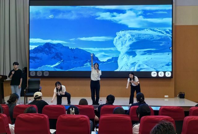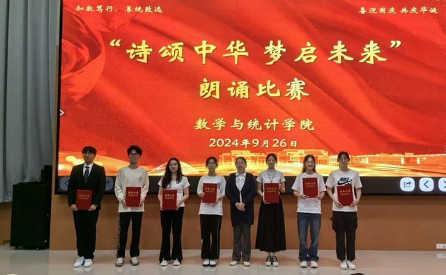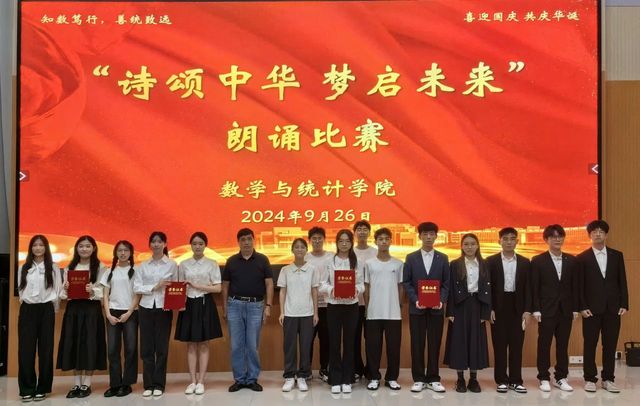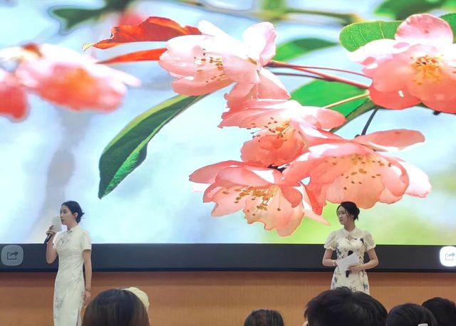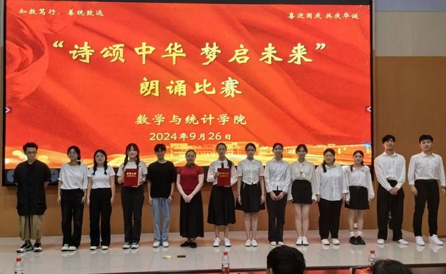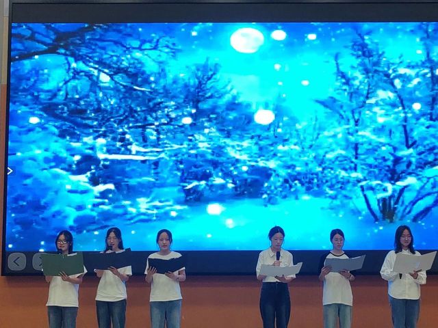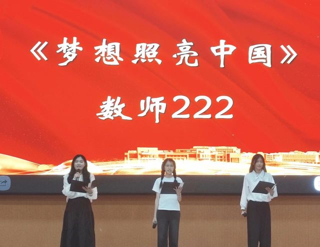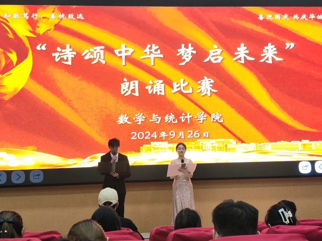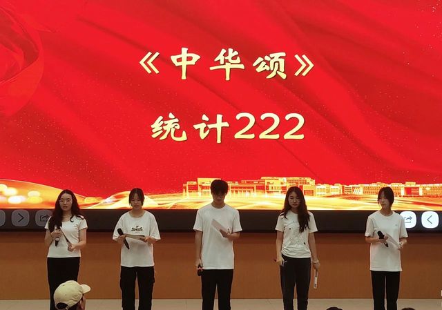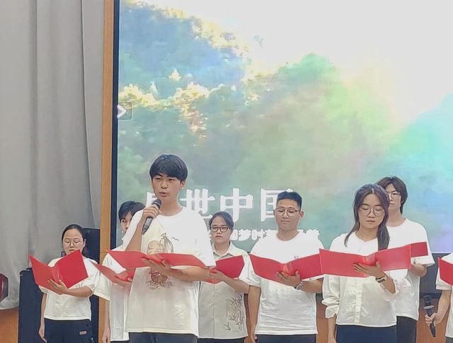 在第一篇章“历史回想”中,统计231班带来的朗诵《礼赞中国》满是对祖国的热爱、对青年的赞颂。我们仿佛能看到无数先驱者,怀揣着对共产主义的坚定信仰,不畏艰难险阻,勇往直前;统计222班带来的《中华颂》以饱满的热情和真挚的情感,将中华大地五千年的辉煌历史与灿烂文化娓娓道来;数师232班带来的《月光下的中国》用细腻的情感和丰富的想象,描绘出了一幅幅月光下的中国画卷;统计232班带来的《海棠花语》深情演绎了邓颖超在怀念周恩来总理时写下的散文诗歌。周恩来与邓颖超在革命的道路上相互扶持,始终坚守着对彼此的承诺,用实际行动诠释了“矢志不渝”的真谛。他们对海棠的眷眷深情,也寄托了两人浪漫的情谊和美好的革命理想;数师定向221班带来的《沁园春·长沙》《沁园春·雪》,让人们仿佛看到了万山红遍、层林尽染的秋日景象,感受到了“恰同学少年,风华正茂;书生意气,挥斥方遒”的青春激情,“数风流人物,还看今朝”的豪迈与自信。