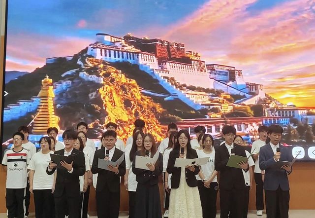 在第三篇章“筑梦未来”中,数师定向231带来的《永远的格桑梅朵》声情并茂地为我们演绎了一支进藏的女兵小队,在极其艰苦的条件下,用血肉之躯走出了一条解放西藏的道路。永远的格桑梅朵,不仅仅是一种花的名字,更是一种精神的象征;数师222班带来的《梦想照亮中国》催人奋进的诗词,展现出同学们的朝气与自信,一字一句都洋溢着青春的梦想,年轻的底蕴和热爱的力量。数师232班带来的《山河赋色·红旗飘扬》让我们切实感受到祖国战胜艰难险阻,实现伟大崛起的光辉历程。正是先辈们的无私奉献,才有现在屹立在世界民族之林的强大中国;统计232班带来的《青春中国》抒发了对祖国的热爱之情。在激昂的旋律与文字间,我们感受到了青春的热烈,那是对未知世界的勇敢探索,是对自我价值的不懈追求。