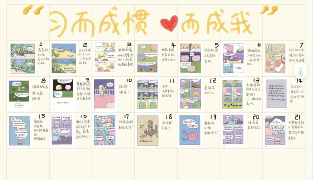 为帮助同学们培养良好习惯,提升自我素养,数统院心协于举办“21 天养成一个好习惯”活动。通过 21 天的持续努力,同学们将积极的行为转化为习惯,塑造更好的自己。