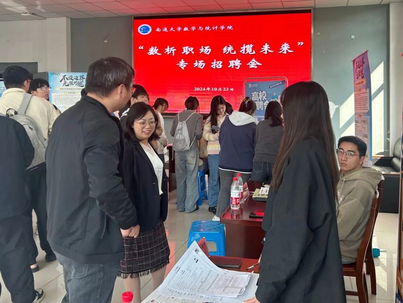 本次校园招聘会有新东方、江苏欣瑞教育咨询有限公司、南通市崇川区博华教育培训中心等数家知名企业到场参会,主要招聘数学、教育学、应用统计等多个方向的人才。毕业生们手持精心准备的简历,自信满满地穿梭于各企业展位之间,积极与招聘人员交流,了解用人单位的需求和岗位信息。招聘会现场气氛热烈,秩序井然。