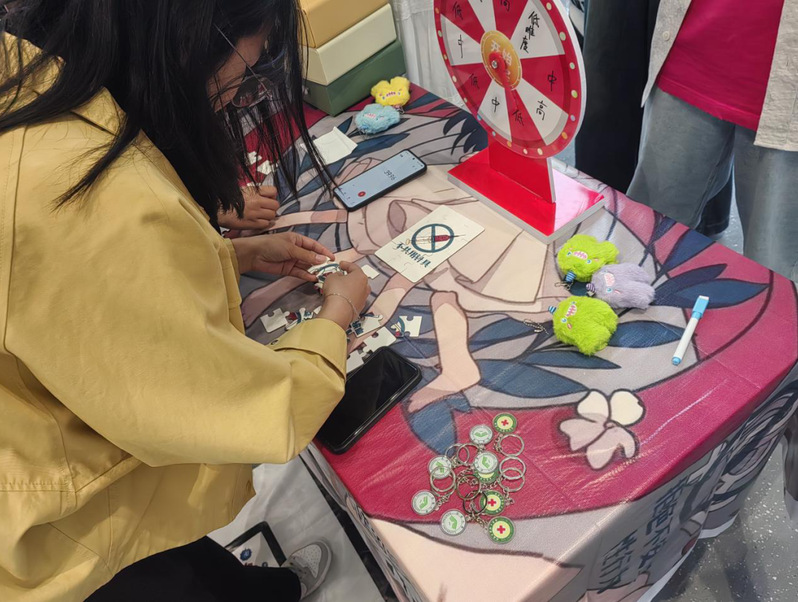 在 “知识问答大冒险” 区域,标有 “高、中、低” 难度等级的转盘吸引众多同学参与。参与者转动转盘,随机抽取防艾知识卡答题。有同学答对高难度题目后感慨道:“原来 HIV 病毒离开人体后存活时间这么短!” 这种随机挑战的方式,激发了同学们探索防艾知识的积极性。