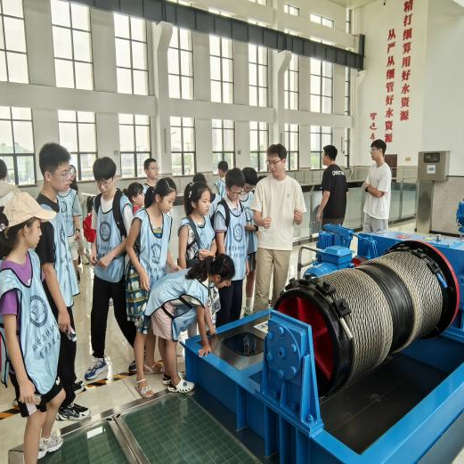 开展水知识讲座、参观通吕闸、通吕泵站工程、安全体验馆等,通吕运河水利枢纽的实地考察更是让孩子们大呼过瘾。通过学习大数据平台系统展示区巨大电子屏幕上实时跳动的水位高度、水流速度、水质指标等数据,孩子们初步清晰了闸站如何通过精准控制水位实现防洪、排涝、灌溉等功能。老师们现场演示无人机航道巡检,对水利枢纽进行智能化管理和调度。孩子们尝试操作简单的数据分析程序,过了一把“水利指挥官”的瘾,小脸上写满了自豪。