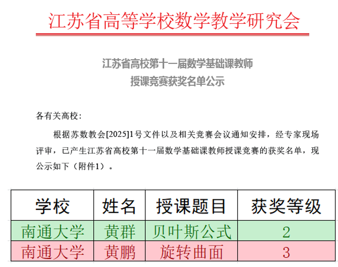 近日,省高校第十一届数学基础课教师授课竞赛圆满落幕,公司黄群老师荣获二等奖,黄鹏老师荣获三等奖,充分展现了公司教师扎实的教学功底与良好的精神风貌。