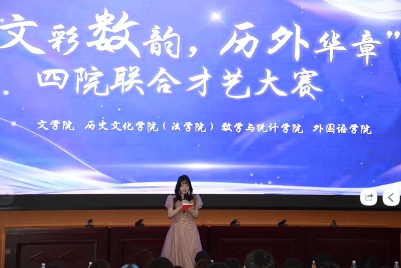 ·鸿鹄朗朗·向未来·情感沉淀,第三篇章「鸿鹄朗朗·向未来」将晚会推向高潮。《永远的格桑梅朵》以深情朗诵为笔,勾勒出高原风雪中坚韧的身姿,字字铿锵承载信仰力量,句句真挚传递不朽情怀;《You and me》以默契舞姿为语,舒展青春同行的温暖画卷,灵动舞步诉说相伴美好,轻盈律动点亮彼此微光;《传奇》以悠扬歌声为桥,连接跨越时光的深情牵挂,婉转旋律萦绕耳畔,真挚唱腔诉说不朽故事;《戏爵》以跨界舞蹈为媒,碰撞传统戏曲与现代潮流的火花,韵味身姿彰显文化底蕴,活力律动绽放独特魅力;数学师范专业龚倚萱同学带来的《我爱你,中国》,以清澈真挚的嗓音传递赤子之心,为这个夜晚写下动人终章。