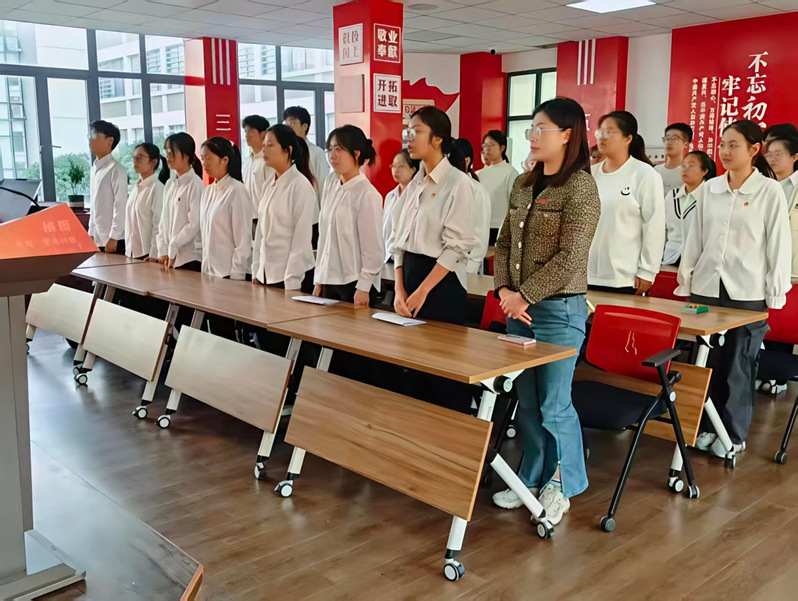 公司团委副书记魏妍妍老师宣读新发展团员名单,经过严格的考察与选拔,学院本次共有6名同学成为光荣的共青团员。