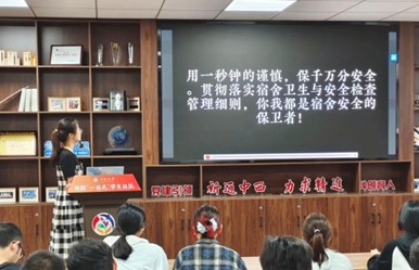 活动伊始,全体师生集中观看《“一秒钟”宿舍安全警示录》教育片。影片通过模拟宿舍危险用火、大功率电器使用不当等真实场景,展示触目惊心的危险后果影像,直观呈现宿舍安全隐患带来的严重后果,此次观影为全体师生拉响安全红绳,警示同学们须以如履薄冰之心筑牢宿舍安全防线。