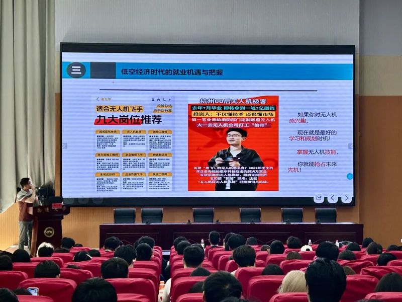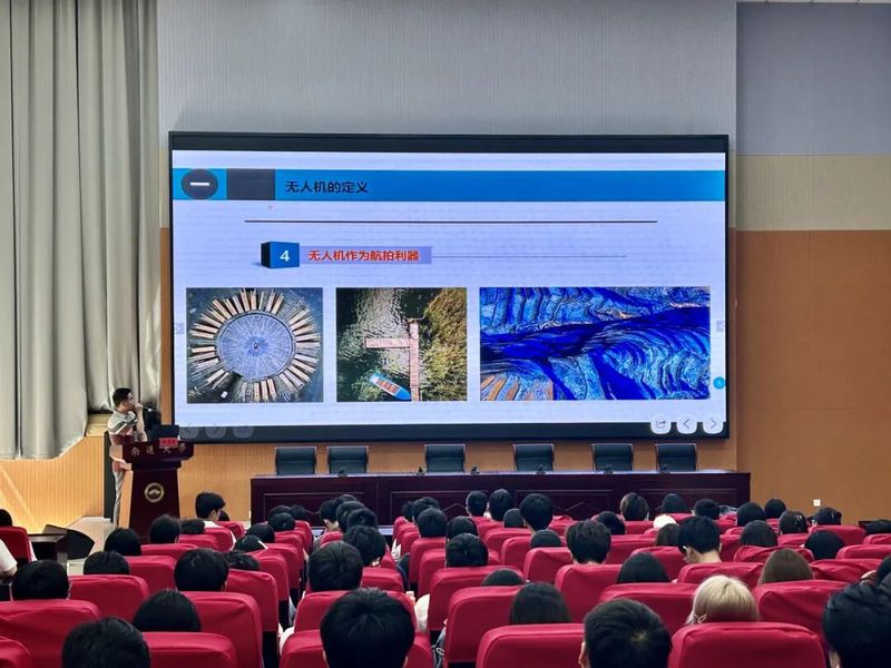 公司员工、翔飞低空智能科技(南通)有限公司总经理杜吉雷作专题讲座。他以“认识无人机”为主题,结合自身经验,从无人机运行的基本原理、核心架构,到其在农业、物流、应急救援等众多领域的创新应用场景,以及低空空域改革背景下的未来发展趋势,生动展现了无人机技术的巨大潜力与广阔前景。他强调,作为新时代的通大学子,应当紧跟科技前沿,将专业知识与行业需求紧密结合,培养跨学科思维,关注无人机在可持续发展、智慧城市等领域的深度融合,为低空经济领域的蓬勃发展贡献智慧与力量。