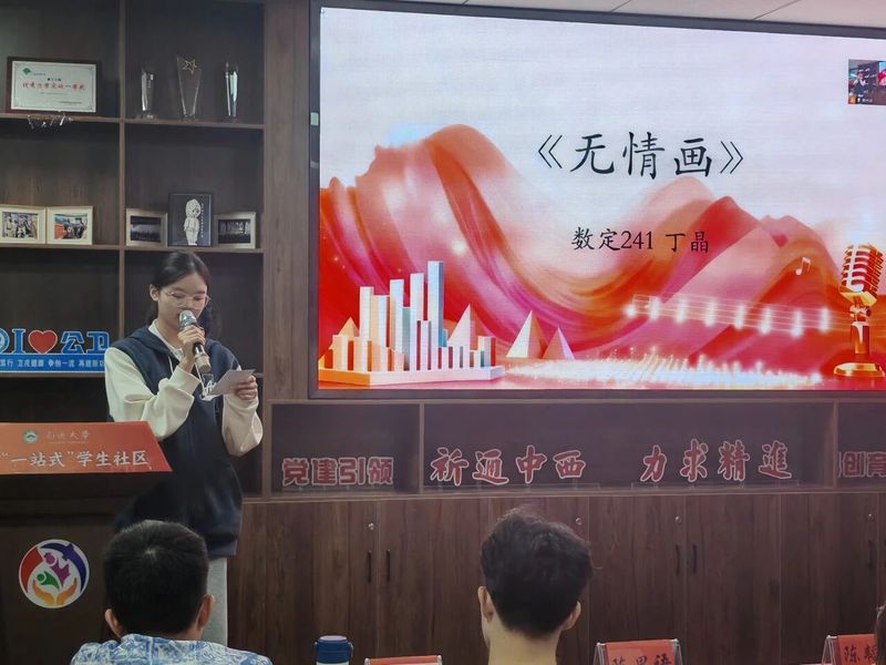 统计241的阚皓岩、数师定向251的袁钰尧、统计241的邹吕鑫、数师定向241的丁晶、统计252的顾敏、统计252的刘伊茗同学荣获三等奖,优美的歌声在室内缓缓回荡,让人沉醉其中。