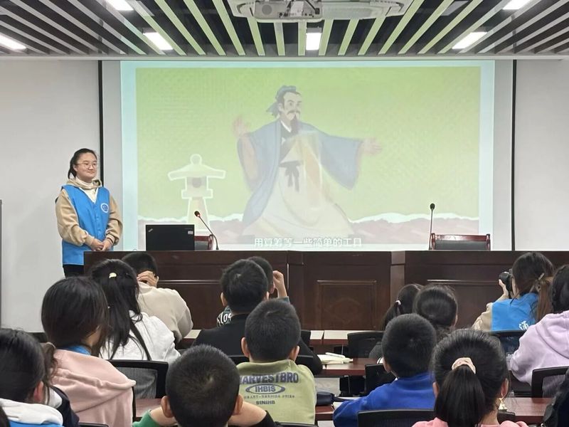 本次活动的核心亮点,是由社团志愿者王言浠同学带来的一场别开生面的“生活中的数学探索”科普课堂。她借助生动的PPT演示,将抽象的数学概念变得直观有趣,极大地激发了孩子们的好奇心。