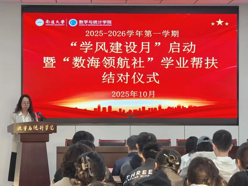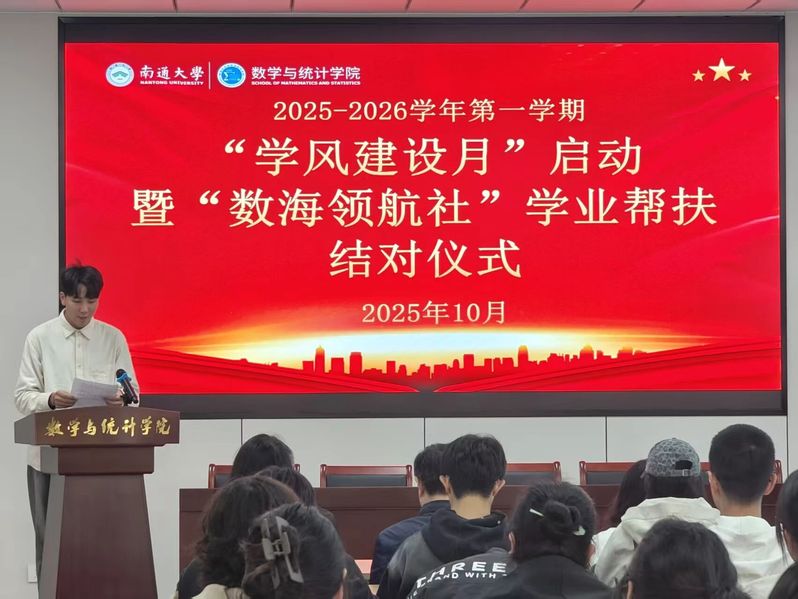 随后,学院学工办主任戴琳娜宣读“数海领航社”学业帮扶结对名单,标志着本学期学业帮扶工作正式启动。“领航人”代表吴欣芮同学在发言中承诺,将充分发挥榜样引领作用,以高度的责任心和饱满的热情分享学习经验、提供学业指导,与“同行者”们在求知路上互勉互助、携手同行。