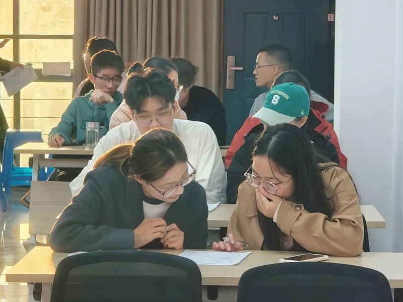 活动最后,全体师生合影留念后,现场进入结对交流环节,“领航人”与对应的“同行者”互相交流,围绕学习情况展开深入讨论,共同分析学情短板与提升方向,并协作填写《学业帮扶记载表》,为后续精准帮扶筑牢基础。“数学+”党建驿站同步开展了首场学业帮扶现场答疑活动。