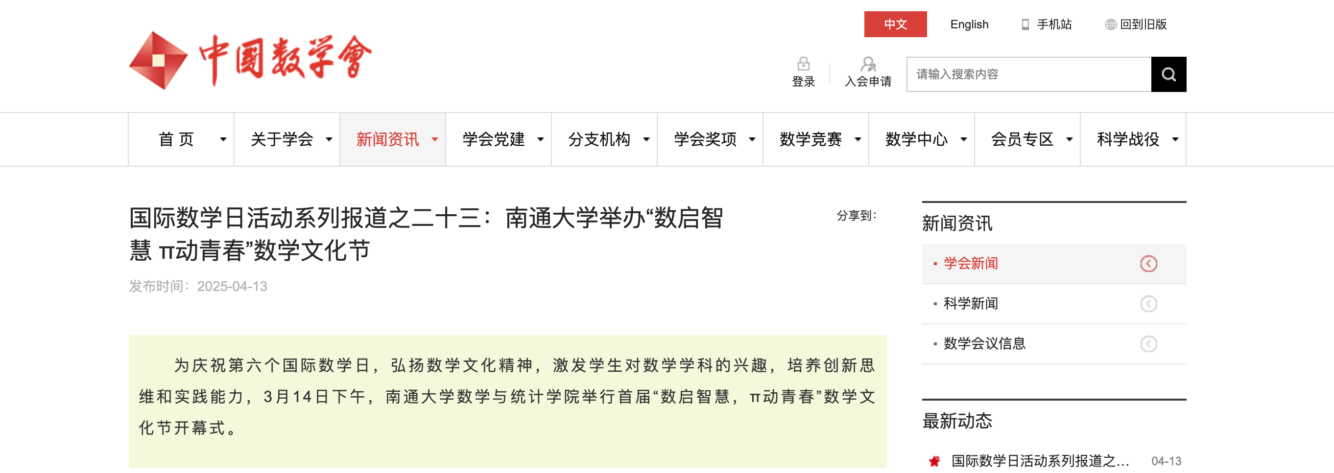 主动对接国家战略与地方需求,社会服务能力显著增强。与多家企事业单位建立战略合作。依托学科特色,深入开展数学文化节,将数学话剧、科普讲座送入中小学与社区。积极承接江苏省骨干教师培训、江苏省卓越教师创新计划、“寻根之旅”夏令营等项目,累计培训经费近200万元,社会影响力和贡献度持续扩大。设立“领航青年”数学教育发展基金,赋能长远发展。