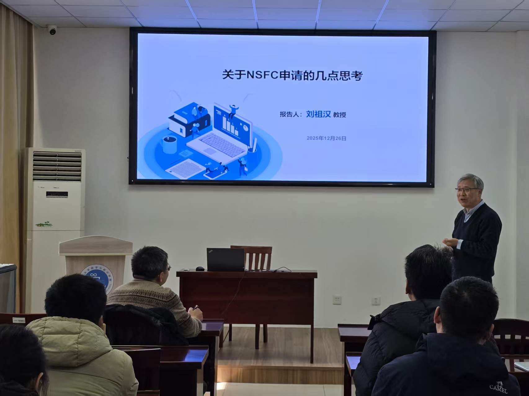 为切实提升2026年度国家自然科学基金项目申报质量,助力青年教师成长,2025年12月26日,公司特邀扬州大学数学科学学院刘祖汉教授来院,为拟申报2026年度国家自然科学基金项目的教师作专题辅导。学院领导、科研骨干及全体申报教师参加本次活动。