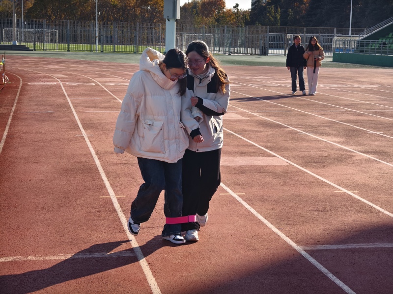 本次活动打破传统防艾宣讲的单一模式,以团队协作类趣味运动为载体,巧妙嵌入防艾知识考核环节,实现“学思践悟”与“趣味体验”的有机统一。活动现场暖意融融、活力迸发,两大核心闯关任务环环相扣,兼具趣味性与知识性:队员们默契搭档完成背对背夹气球折返挑战,在同步步调中锤炼协作默契;紧接着通过两人三足绑腿冲刺抵达终点,随机抽取防艾题目现场作答,在紧张比拼中检验知识储备、巩固核心要点。趣味运动的鲜活活力与防艾知识的严谨专业碰撞交融,既消解了防艾教育的严肃感,更让学子们在沉浸式参与中深化了对防艾知识的记忆与理解,真正做到“在玩中学、在学中用”。