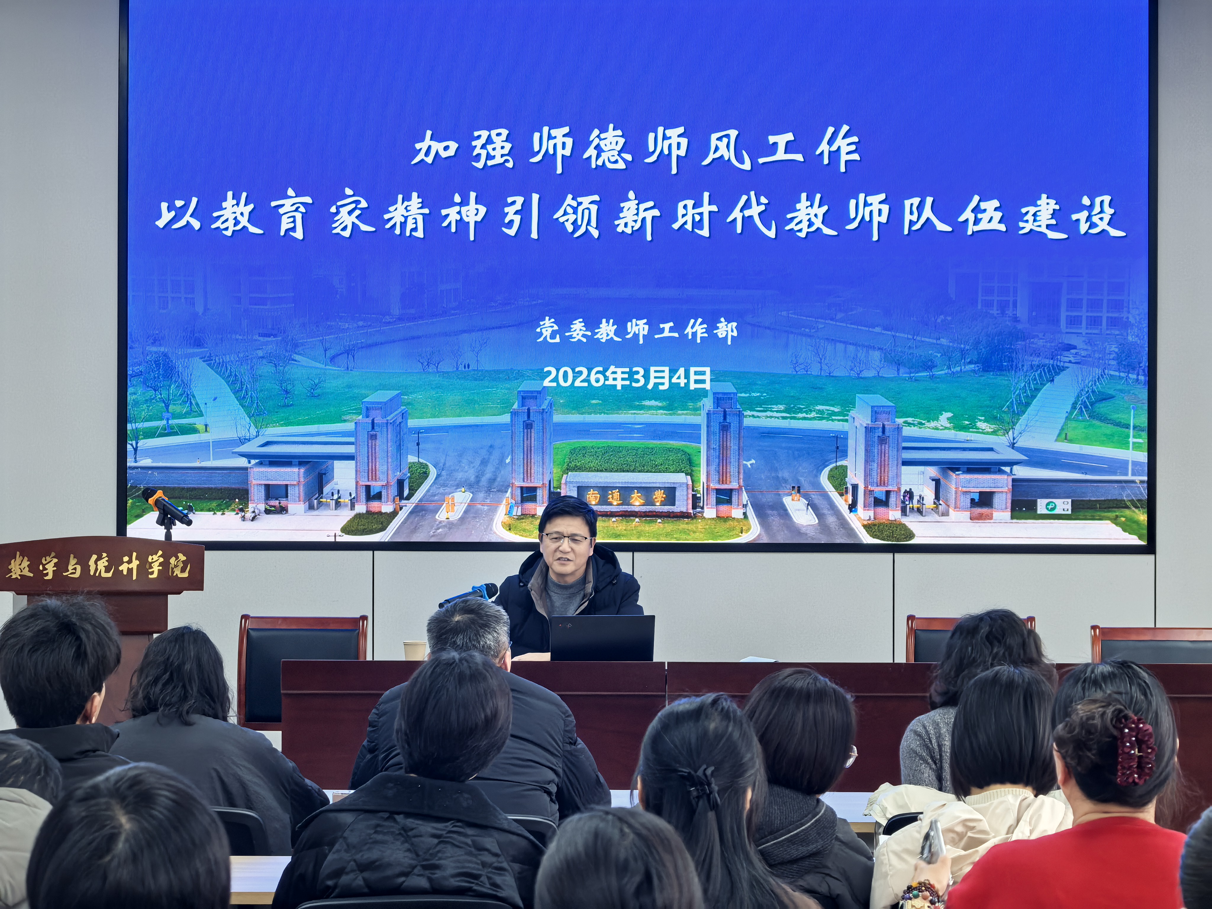 王晓峰以《加强师德师风工作 以教育家精神引领新时代教师队伍建设》为题,结合当前学校师德师风建设工作实际,系统阐释了“教育家精神”的核心内涵,并从坚守教育初心、严守职业底线、赋能教师成长三个维度出发,深刻剖析了新时代教师践行教育家精神、落实立德树人根本任务的内在逻辑与实践要求。通过本次学习,全体教师进一步深化了对“学高为师,身正为范”职业品格的理解,增强了“为党育人、为国育才”的使命意识,也更加明确了在教育家精神引领下提升师德修养、推动教学科研融合发展的实践方向。