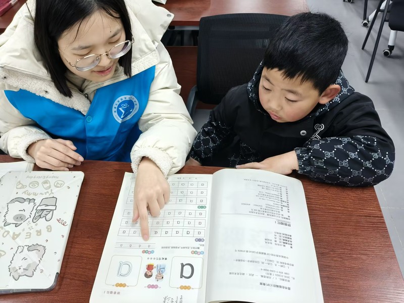 随后,志愿者们为孩子们开展课业辅导,针对数学、语文、英语等学科难题,俯身倾听、循循善诱,用通俗易懂的方式启发思路,陪伴孩子们攻克学习难关,定格下温馨的陪伴瞬间。
