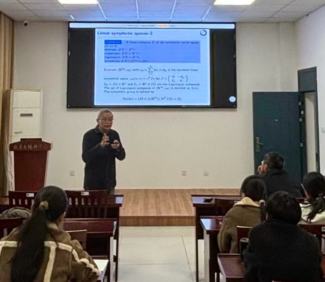 刘春根教授在报告中系统阐述了带拉格朗日边界条件的哈密顿系统的Maslov型指标理论及其应用等主要研究内容。讲座中,刘教授给出了拉格朗日边值问题的Maslov-L指标的新定义。进一步,作为实际应用例子,刘教授展示了有关一阶哈密顿系统闸轨道最小周期问题的一个结果和Conley猜想等内容。