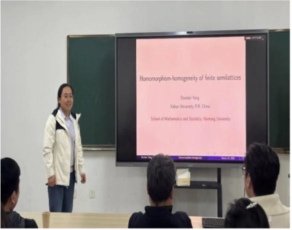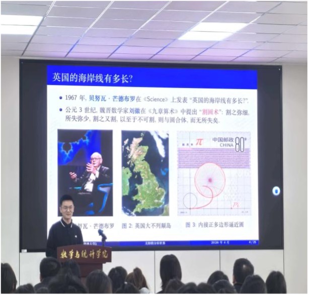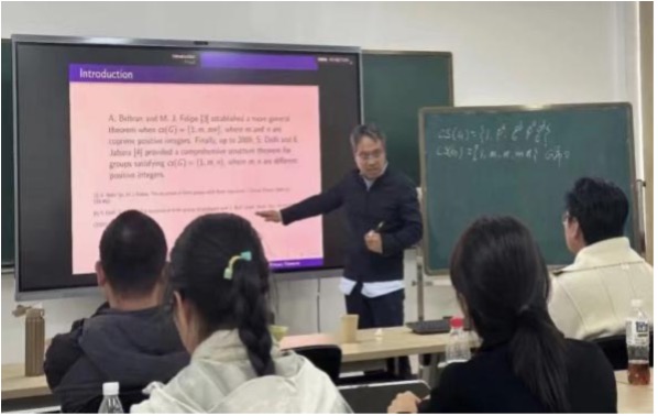 文化节期间,学院持续推出文化节系列之高水平学术交流活动。清华大学胡家信教授以雪花为切入点,用生动形象的语言深入浅出地介绍了分形理论及其广泛应用。他系统讲解了迭代函数系产生的分形、L系统产生的分形、茱莉亚集和曼德勃罗集以及随机分形等内容,带领大家领略了分形几何的独特魅力与深刻内涵。南京大学黄兆泳教授、北京师范大学胡维教授、江苏师范大学张孝金教授、河南大学韩喆教授与沈大伟教授、江汉大学赵体伟教授以及华东师范大学卞秀丽博士等学者,围绕gentle代数和倾斜理论分享最新研究成果。广州大学刘春根教授系统阐述了带拉格朗日边界条件的哈密顿系统的Maslov型指标理论及其应用。西北大学赵宪钟教授从多项式谈起到半环簇的研究介绍,立足《高等代数》核心内容,回溯多项式代数理论发展脉络。中国科学技术大学郭文彬教授结合数十年科研经验,深入剖析了代数研究的方法论与课题挖掘路径。西安电子科技大学杨丹丹教授分享了有限半格齐次系的全新分类结果以及进一步可以研究的问题。河海大学缪龙教授系统介绍了通过二极大子群以及群系函子建立群系和群扩张之间的重要联系。南京邮电大学邵长国教授介绍了团队关于利用几乎素元来研究共轭类长的最新进展。系列学术活动为师生打开了通往数学前沿领域的一扇窗,有力助推了创新型数理人才的培养。