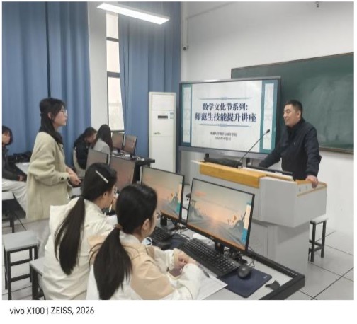 夯实教学基本功是数学师范生培养的核心环节。4月3日,文化节系列之师范生技能提升讲座举行。闽南师范大学周仕荣教授应邀来院指导数学教育硕士论文写作。周教授认真听取了每位同学的选题陈述,从选题定位、研究设计、方法选择与逻辑结构等方面提出针对性修改意见,强调学位论文应注重理论与实践的结合、问题意识清晰、研究方法规范得当。江苏省南通中学附属实验学校教学管理处副主任、丘成桐少年班教学负责人崔建平老师以《以“丘班”为镜:数学师范生教学基本功的进阶之道》为题,从“省青基赛”备赛策略与“如何上好一节数学课”两个维度展开深度讲解,结合鲜活案例分享了教学设计的前沿理念与课堂掌控的艺术两场活动相辅相成,共同助力未来数学教师的专业成长。