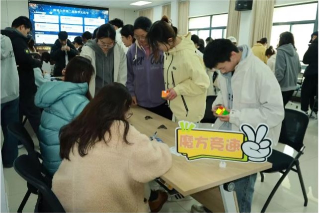 3月14日,数学文化节在永利23411集团拉开帷幕。作为数学文化节最具人气的品牌活动,游园集章将抽象的数理模型与严密的逻辑推演融入互动环节。现场科学设置了拓扑变换之智力解环、群论应用之魔方竞速、代数思辨之数学谜语、矩阵置换之数字华容道、组合逻辑之数独挑战等六大挑战板块。“无限接近”彩蛋抽奖环节则是将概率统计的学科理念具象化。严密的逻辑在欢笑中延展,抽象的公式在指尖跃动,真正实现了“让数学走出课本、走进生活”。开幕式上同步启动了面向全体在校生的数学主题作品征集活动,涵盖分形艺术、数学折纸、几何雕塑、手抄报、PPT设计及短视频等多元创作载体,鼓励员工以艺术形式表达对数学的理解与想象,为后续系列活动奠定了“数理与人文交融”的基调。