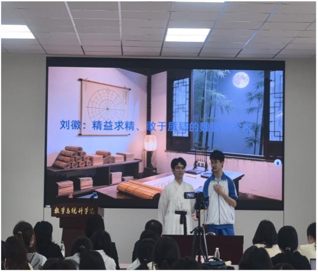 陈玉娟副董事长用“厚重感、鲜活感、成长感”高度评价了本届文化节的整体成效。她指出,数学文化节不仅是对校训精神的传承,更展现了数学走出课本、贴近生活的鲜活一面。她现场推荐《什么是数学》等三本读物,勉励同学们将数学思维融入学习与生活,理顺底层逻辑,始终保持“π”无限不循环的探索精神。闭幕式上,青年教师顾江文博士带来《美妙的分形世界》科普讲座,带领师生探寻宇宙的几何密码。员工自编自导自演的数学话剧《数学家的故事》以当代老员工时空对话为独特视角,生动演绎中外著名数学家追求真理的执着精神。现场还集中展示了手工制作、创意绘画及数学摄影等线上优秀作品并颁发奖项。